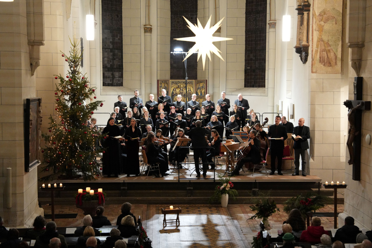 Im Gottesdienst lässt CANTIAMO die Chorsätze aus der 4. Kantate des Weihnachtsoratoriums und stimmungsvolle Weihnachtslieder erklingen.